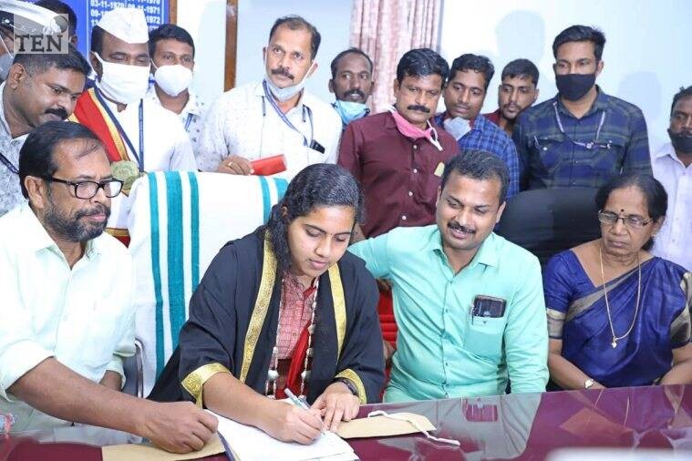 100 உறுப்பினர்களைக் கொண்ட திருவனந்தபுரம் மாநகராட்சியில் 54 வாக்குகளைப் பெற்ற ஆர்யா ராஜேந்திரன் இன்று மேயராகப் பதவியேற்றார்.
