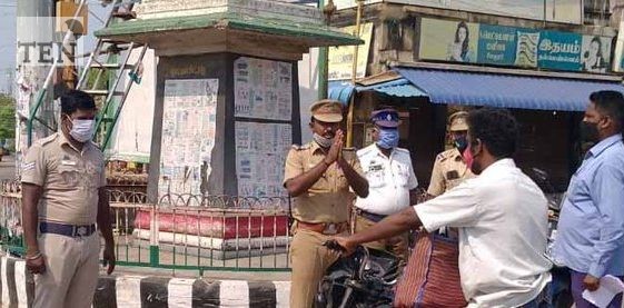 இன்று முழு ஊரடங்கு அமலில் உள்ளபோது இந்நிலையில் மதுரை மாவட்டம் மேலூரில் கட்டுப்பாடுகளை மீறி வெளியே சுற்றியவர்களிடம் மேலூர் காவல் உதவி ஆய்வாளர் பாலகிருஷ்ணன் கையெடுத்துக் கும்பிட்டு “சாமி வெளிய வராதீங்க” என்று வேண்டுகோள் விடுத்தார்.