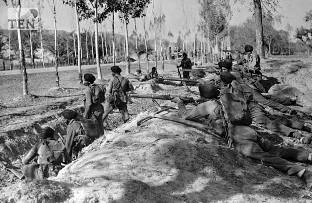 “கோடாரி, வாள் மற்றும் துப்பாக்கிகள் போன்ற ஆயுதங்களை ஏந்திய பாகிஸ்தான் இராணுவத்தின் ஆதரவுடன் காஷ்மீருக்குள் ‘லஷ்கர்கள்’என்னும் பயங்கரவாதிகள் காஷ்மீரைத் தாக்கினர்.