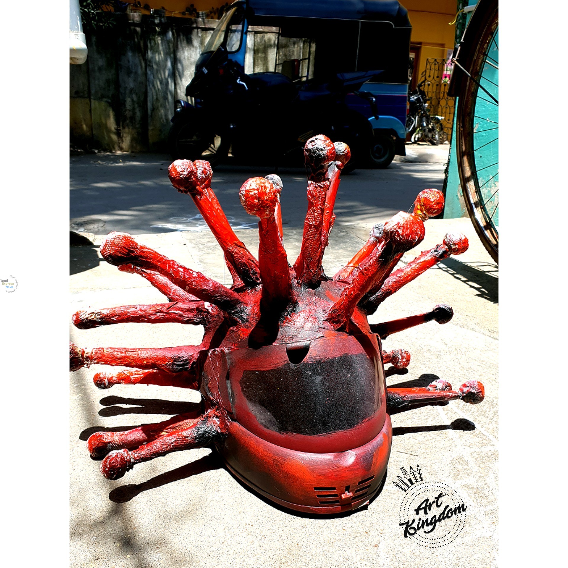 அவர்களிடையே நூதன முறையில் விழிப்புணர்வு ஏற்படுத்தும் வகையில் வில்லிவாக்கம் காவல் ஆய்வாளர் ரஜிஸ்பாபு என்பவர் கொரோனா வைரஸ் வடிவில் தலைக்கவசம் அணிந்துகொண்டு பாடி மேம்பாலத்தில் விழிப்புணர்வு செய்தார்.
