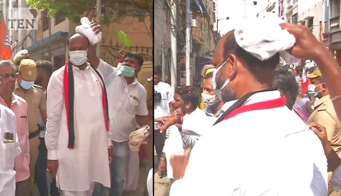 அதே போல அவரை சுற்றி எப்போதும் 4 பாதுக்காவலர்கள், கூட்டணி கட்சி நிர்வாகிகள், தலையை துடைத்து விட பணியாள் என கெத்தாக ஜாண்பாண்டியன் வாக்கு சேகரித்து வருகின்றார்.