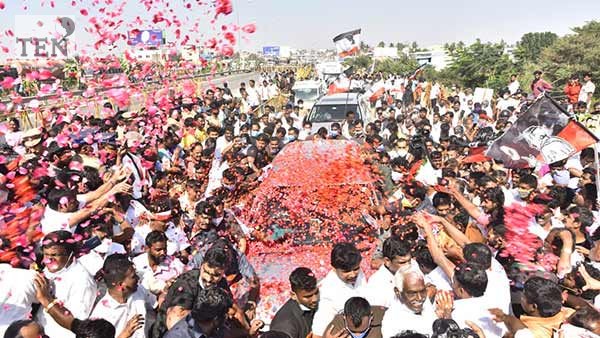 பெங்களூருவில் இருந்து அதிமுக கொடி கட்டிய வேறு காரில் வரும் சசிகலாவுக்கு எல்லையில் அமமுக-வினர் வரவேற்பு அளித்தனர்.
