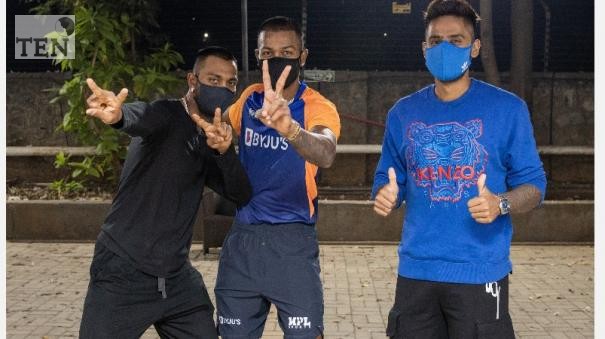 இங்கிலாந்துக்கு எதிரான ஒருநாள் தொடரில் இந்த மூவரும் இந்திய அணியில் இடம் பெற்றிருந்த நிலையில், ஒருநாள் தொடரை 1-2 என்ற கணக்கில் இந்திய அணி வென்றது. இந்த வெற்றிக்குப் பின், மூவரும் விமானம் மூலம் மும்பை வந்து, மும்பை இந்தியன்ஸ்அணியுடன் பயோ-பபுள் சூழலுக்குள் இணைந்தனர்.