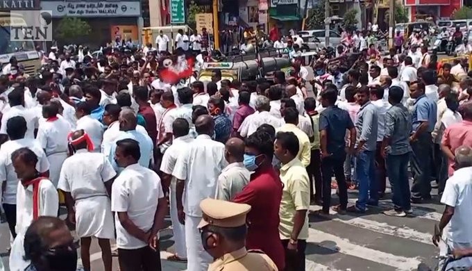 இதில் நூற்றுக்கணக்கானோர் பங்கேற்றதால் அப்பகுதியில் சிறிது நேரம் போக்குவரத்து பாதிக்கப்பட்டது.