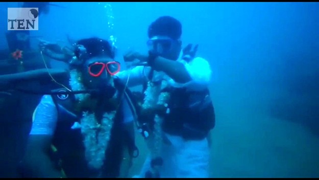 60 அடி ஆழ கடலுக்குள் சென்று அங்கே தோரணம் கட்டி, இந்துமுறைப்படி நடந்திருக்கிறது இந்த திருமணம்.