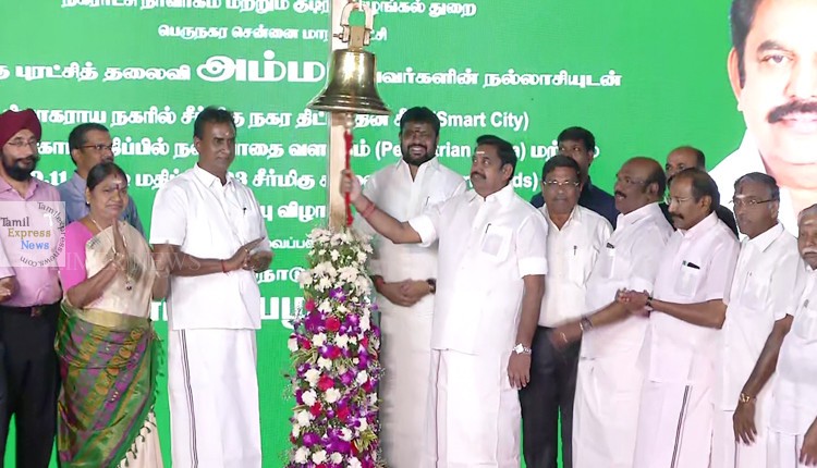 சென்னை தி.நகரில் ஸ்மார்ட்சிட்டி திட்டத்தின் கீழ் பாண்டி பஜார் பகுதியில் அமைக்கப்பட்டுள்ள நடைபாதை வளாகம் மற்றும் சீர்மிகு சாலைகளை முதலமைச்சர் பழனிசாமி திறந்து வைத்தார்.