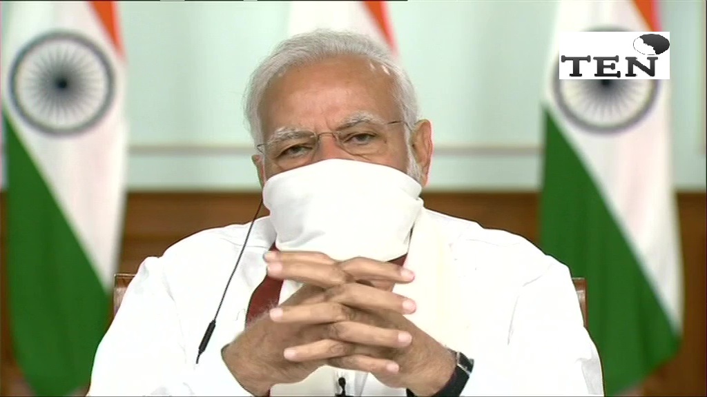 நாடு முழுவதும் கரோனா நோய்த்தொற்று தீவிரமாகப் பரவி வரும் சூழலில், மாநில முதல்வா்களுடன் பிரதமா் நரேந்திர மோடி முகத்தில் துணியை முகக்கவசம் போல மூடியவாறு இன்று காணொலி காட்சி மூலம் ஆலோசனை நடத்தி வருகிறார்.
