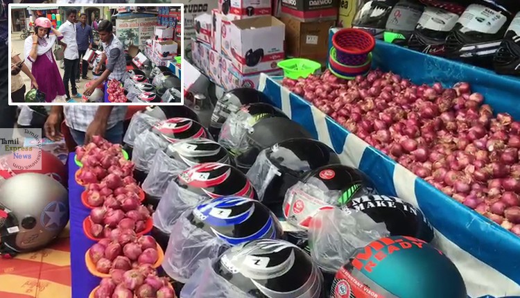 அதன்படி தலைக்கவசம் வாங்கும் ஒவ்வொருவருக்கும் ஒரு கிலோ வெங்காயம் இலவசமாக வழங்கப்படுகிறது. இதனால் இவரது கடையில் வாகன ஓட்டிகள் பலரால் தலைக்கவசம் ஆர்வமாக வாங்கப்படுகிறது.