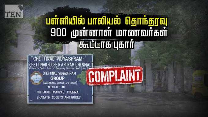 சென்னை செட்டிநாடு வித்யாஷ்ரம் பள்ளியில் மாணவிகளுக்கு பாலியல் துன்புறுத்தல் குறித்து விசாரிக்க முன்னாள் மாணவர்கள் 900 பேர் கையெழுத்திட்டு புகார்.