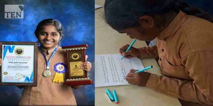 கர்நாடக மாநிலம் மங்களூரை சேர்ந்தவர் ஆதி ஸ்வரூபா(16). இவர் ஒரே நேரத்தில் இரண்டு கைகளிலும் எழுதி அசத்தி வருகிறார்.