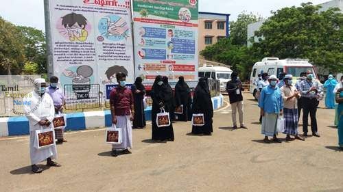 இவர்களுக்கு மருத்துவக் கல்லூரி முதல்வர் குமுதா லிங்கராஜ், மருத்துவ கண்காணிப்பாளர் மருது துரை உள்ளிட்டோர் சான்றிதழ், பழங்கள் கொடுத்து வீட்டுக்கு அனுப்பி வைத்தனர்.