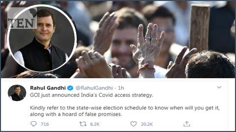 உங்களுக்கு எப்போது கொரோனா தடுப்பூசி கிடைக்கும் என்பதை உங்கள் மாநில தேர்தல் அட்டவனையை பாருங்கள் என ராகுல்காந்தி காட்டமாக டிவிட் போட்டுள்ளார்.