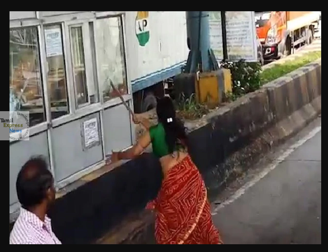 பின்னர் கொந்தளித்த சுமனின் மனைவி, இரும்புகம்பியால் சாவடியை அடித்து உடைத்து நொறுக்கி துவம்சம் செய்தார்.